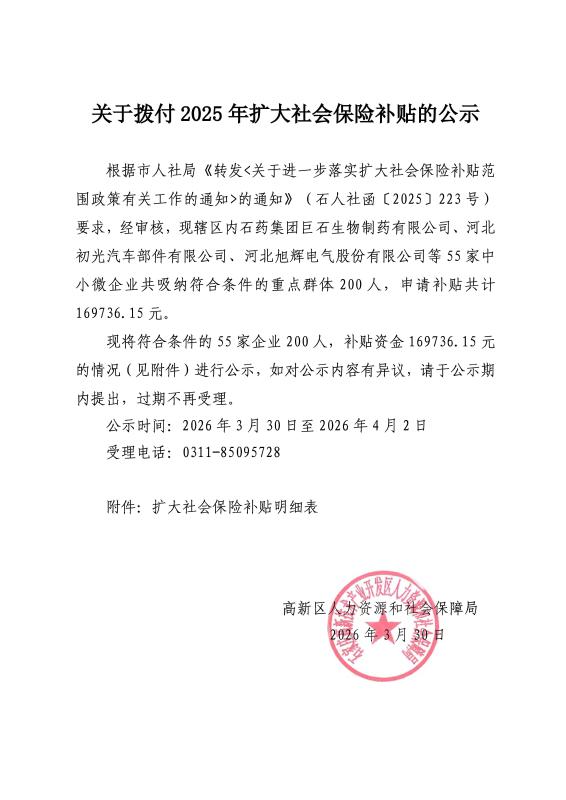 关于拨付2025年扩大社会保险补贴的公示