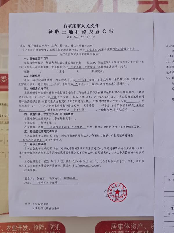 石家庄市人民政府征收土地补偿安置公告
