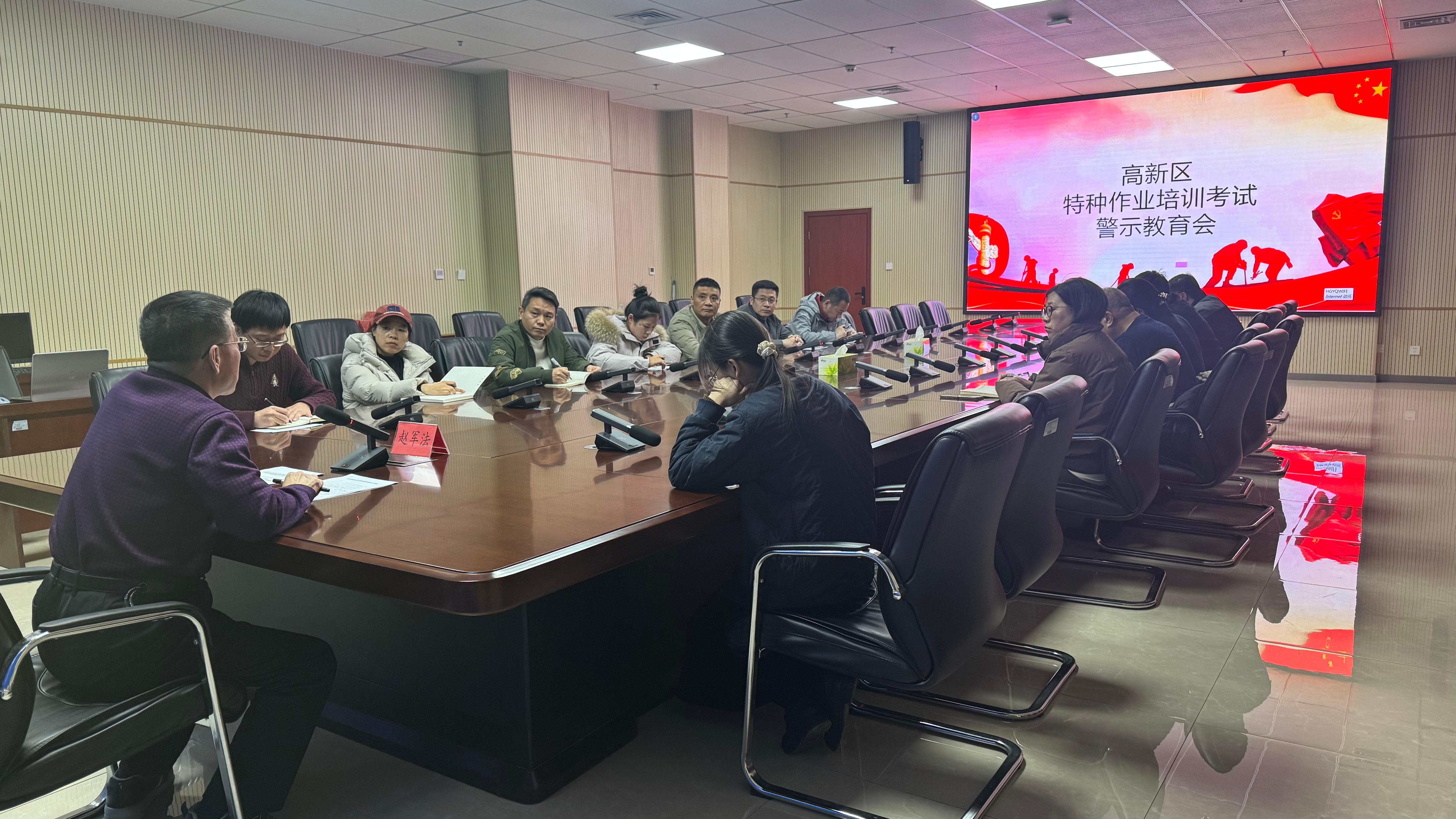 为严格落实上级特种作业安全监管要求,进一步规范辖区特种作业培训考试工作,坚决筑牢安全生产防线,11月19日下午,高新区应急管理局组织召开特种作业考试专项整治警示教育培训会。区应急部门监管人员、辖区特种作业培训机构及考试点相关人员参会。