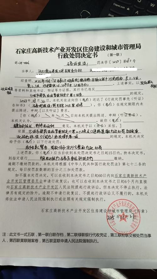 高新区住房建设和城市管理局行政处罚决定书 石高城综渣1罚决字〔2025〕第080号