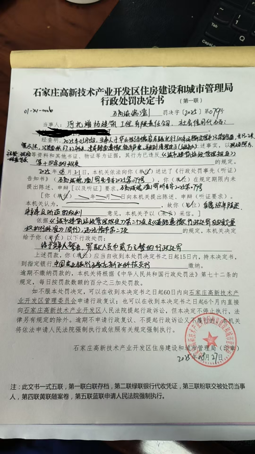 高新区住房建设和城市管理局行政处罚决定书 石高城综渣1罚决字〔2025〕第079号