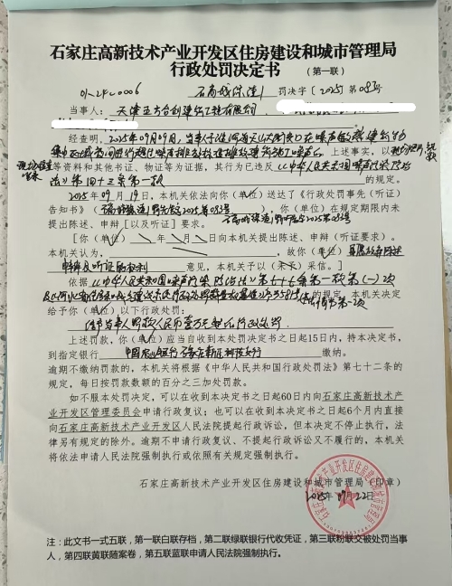 高新区住房建设和城市管理局行政处罚决定书 石高城综渣1罚决字〔2025〕第083号
