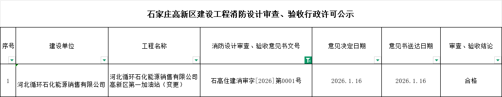 石家庄高新区建设工程消防设计审查、验收行政许可公示