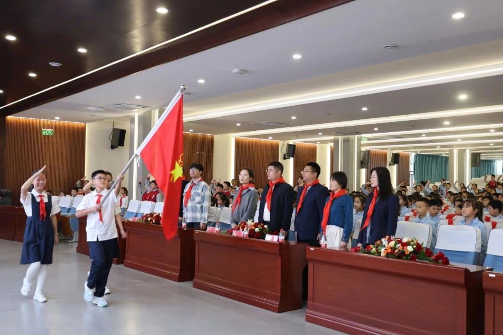 调研组一行深入了解了学校少先队活动开展的亮点成效,观摩了学校的红色主题画展及优秀少先队员手工展、“穿越古今”唐诗墙、生命种植园,并参加了学校二年级新队员入队仪式。私立一中附属小学校长李佟做“引航标星星火炬,红领巾逐梦前行”主题汇报,对学校少先队工作进行了全面展示。