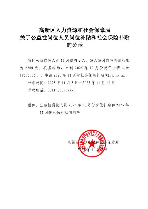 关于公益性岗位人员岗位补贴和社会保险补贴的公示