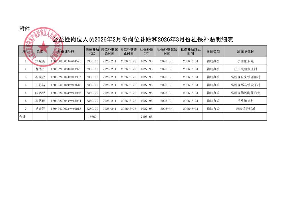 公益性岗位人员2026年2月份岗位补贴和2026年3月份社保补贴明细表缩略图