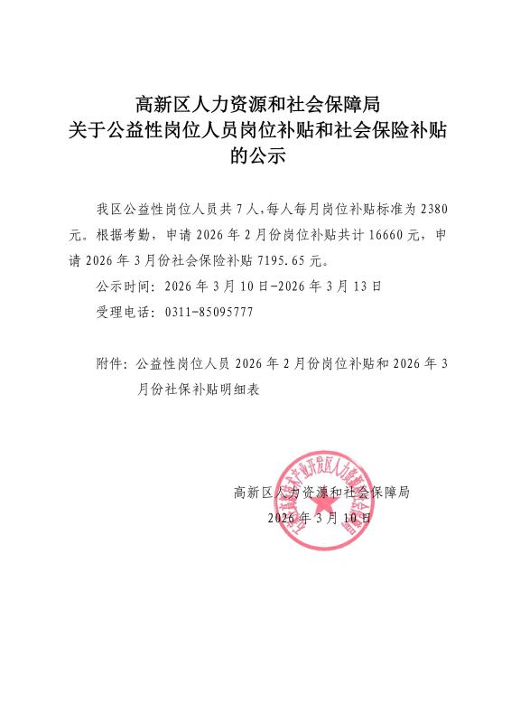 关于公益性岗位人员岗位补贴和社会保险补贴的公示