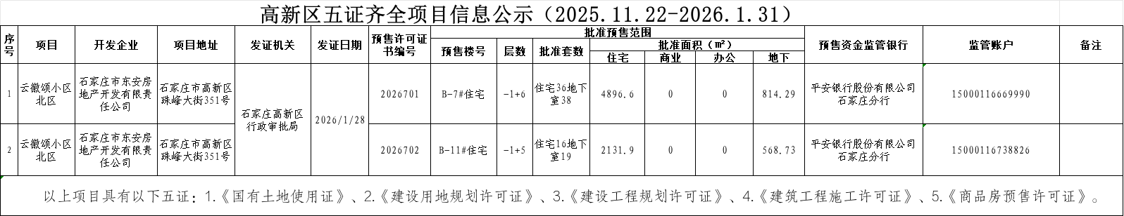 高新区五证齐全项目信息公示(2025.11.22-2026.1.31)