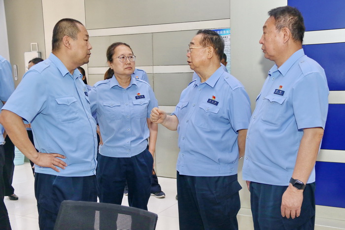 在污水处理厂,公司领导查看了安全生产宣传栏、生产现场、远程监控、应急物品和消防器材,听取了污水处理厂关于安全管理措施的汇报。在进水泵房,公司领导查看了污水处理设备、消防设施、运行班和运行保障班的作业现场,林自强和现场作业人员进行了亲切交谈,强调“要学习”,并听取了总经理助理、厂长王冰然关于提升污水处理厂安全管理的汇报以及有限空间作业、防汛等情况。林自强说,进水泵房的现场空气质量明显改善,说明污水处理厂在提高作业环境质量方面切实做了工作。同时,他指出了需要改进的细节,如现场的防护栏杆需要除锈、刷漆等。