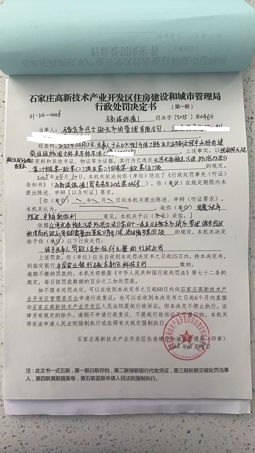 高新区住房建设和城市管理局行政处罚决定书 石高城综渣1罚决字〔2025〕第046号