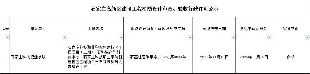 石家庄高新区建设工程消防设计审查、验收行政许可公示