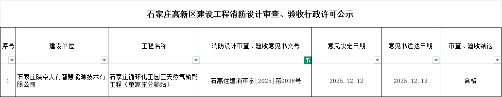 石家庄高新区建设工程消防设计审查、验收行政许可公示
