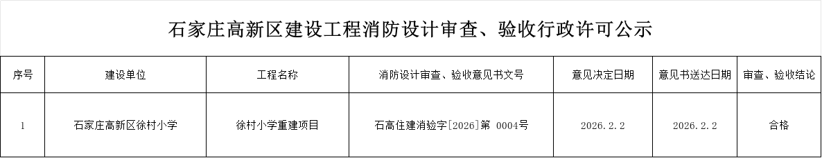 石家庄高新区建设工程消防设计审查、验收行政许可公示