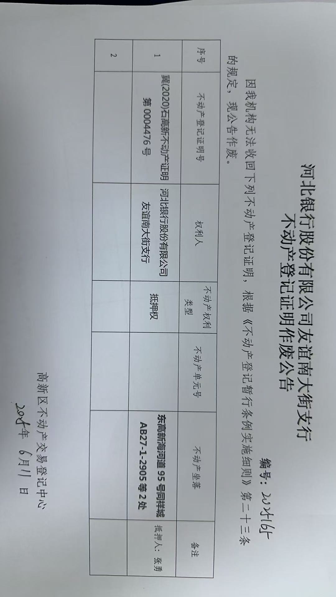 河北银行股份有限公司友谊南大街支行不动产登记证明作废公告(编号:2025165号)