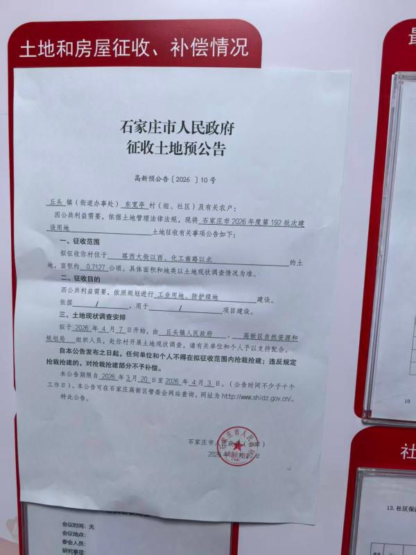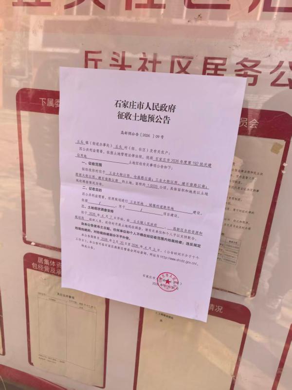 石家庄市人民政府征收土地预公告(2026 9-11号)