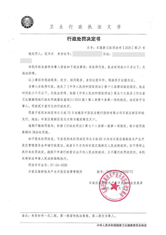 行政处罚决定书 石高新卫医罚决字[2025]第21号、石高新卫医罚决字[2025]第22号