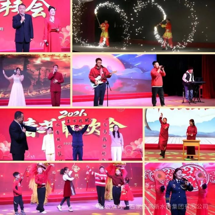 联欢会前的新春团拜会上,集团领导向全体职工拜年,对职工的辛勤付出和家属的默默支持表示衷心感谢。集团党委书记代表集团党委和领导班子发表热情洋溢的新春致辞,回顾了2025年集团在供水保障、污水处理、工程建设等方面取得的显著成绩,号召全体职工以龙马精神迎接挑战,共同谱写水务事业新篇章。