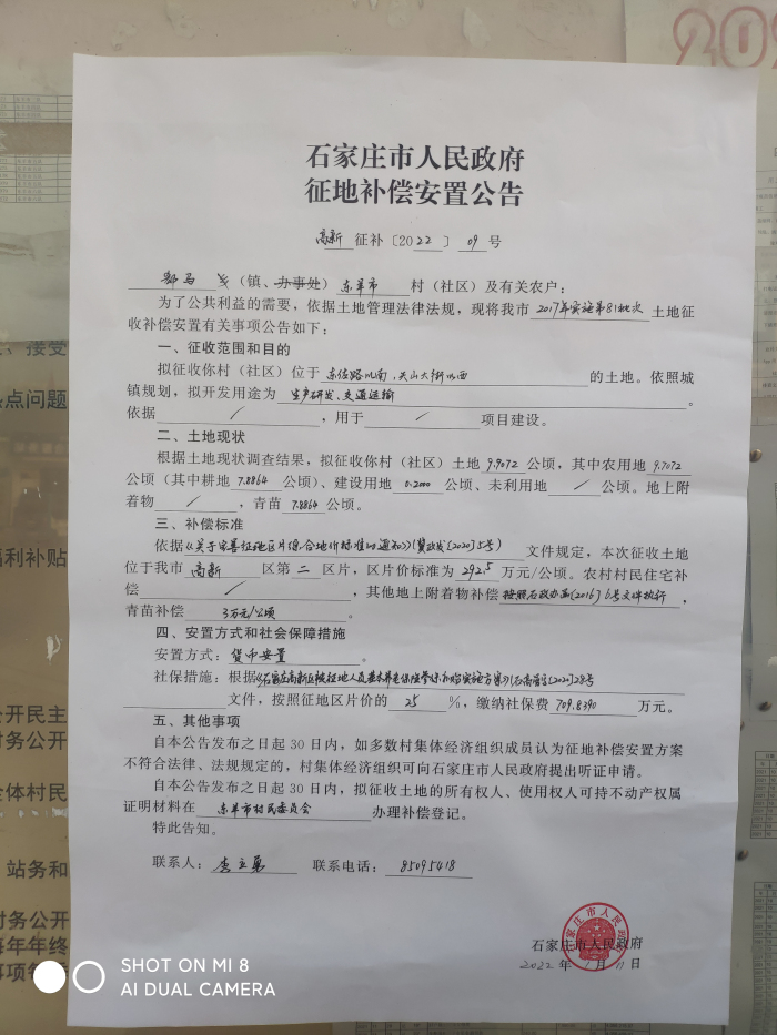石家庄市人民政府征地补偿安置公告(高新征补【2022】09号)