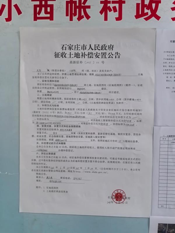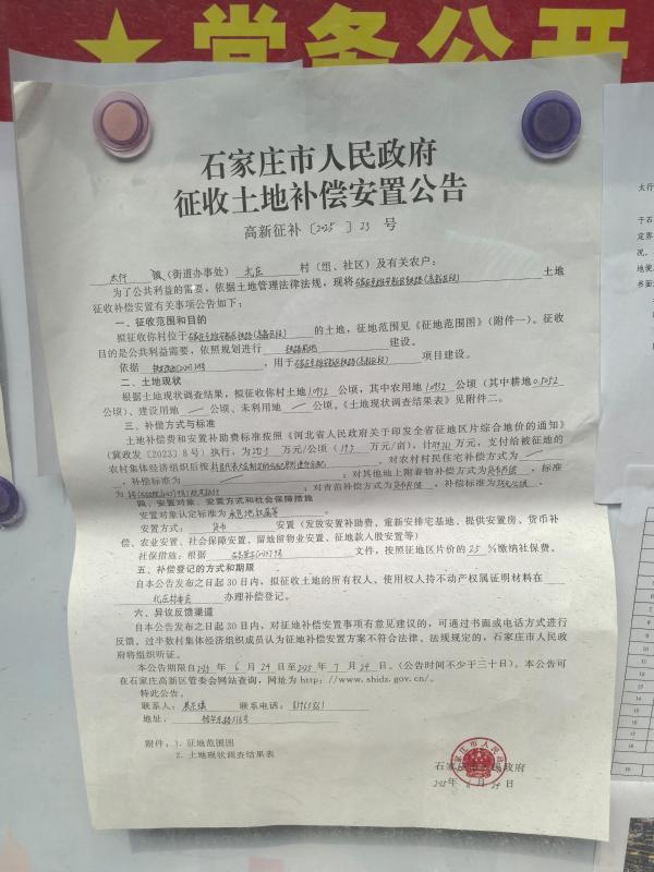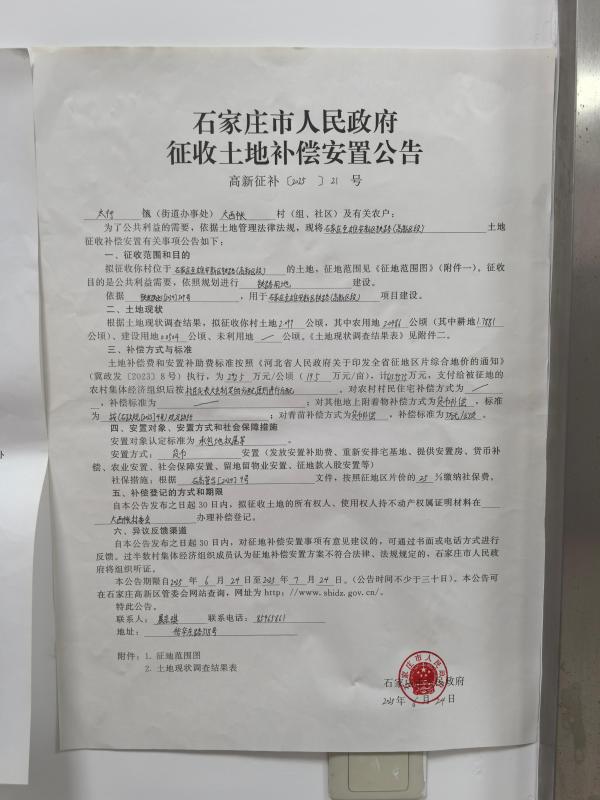 石家庄市人民政府征收土地补偿安置公告